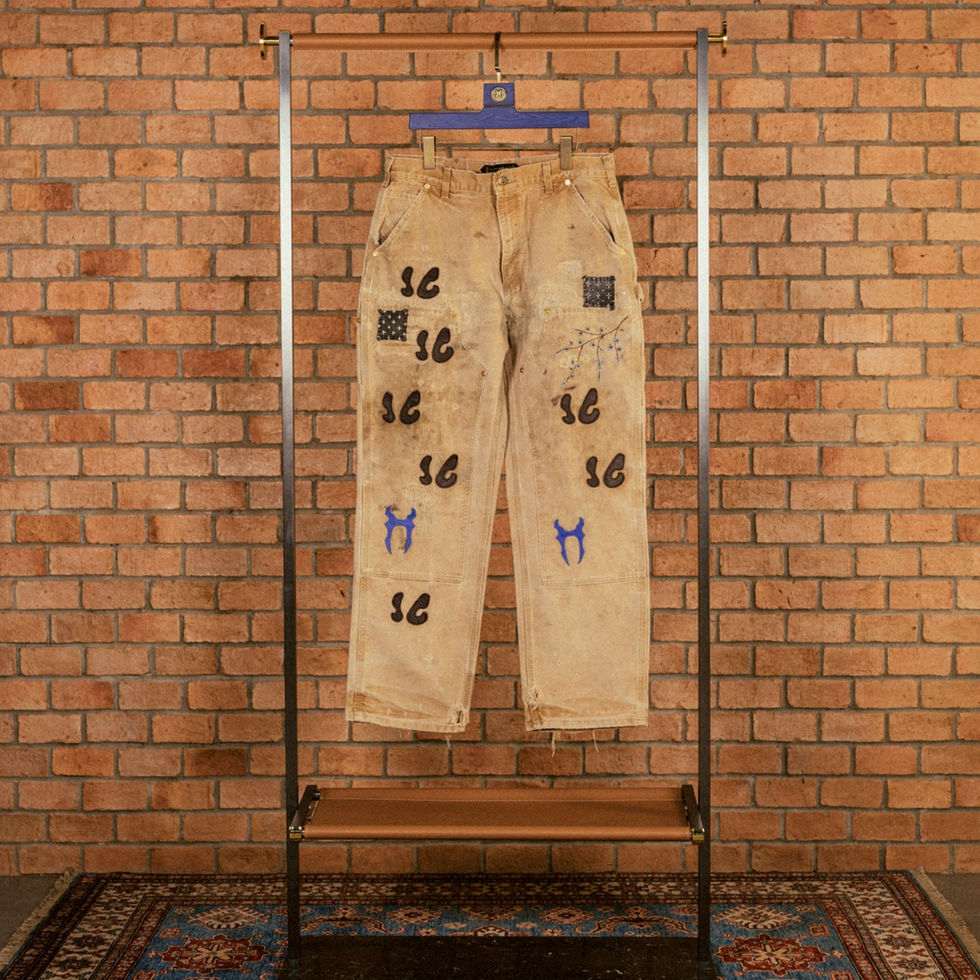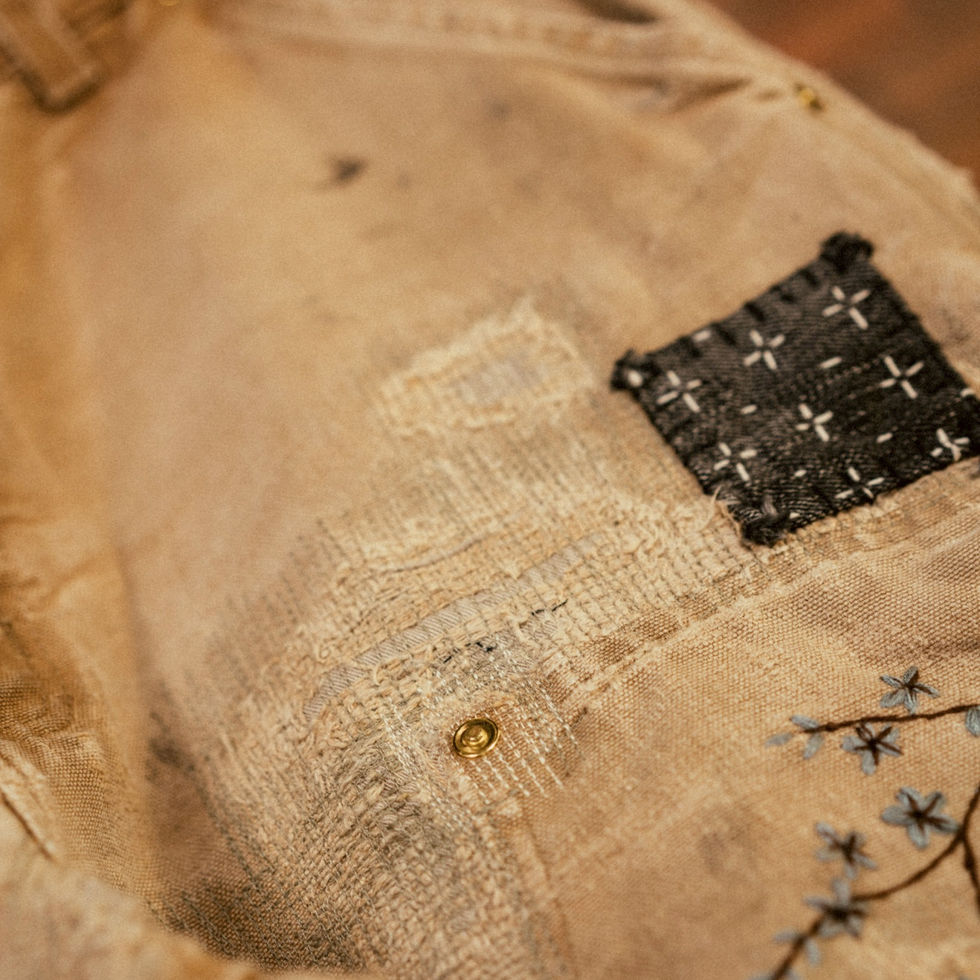 VTG 90s Double Knee Customized H Sashiko Pants ( Khaki No.11/32)