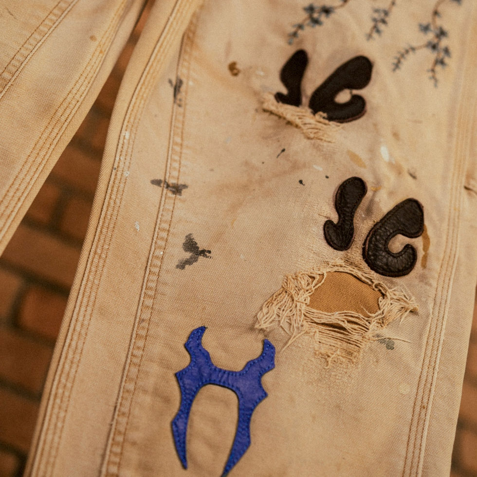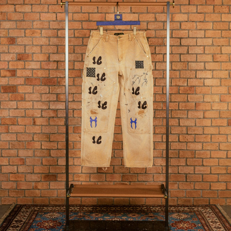 VTG 90s Double Knee Customized H Sashiko Pants ( Khaki No.5/32)