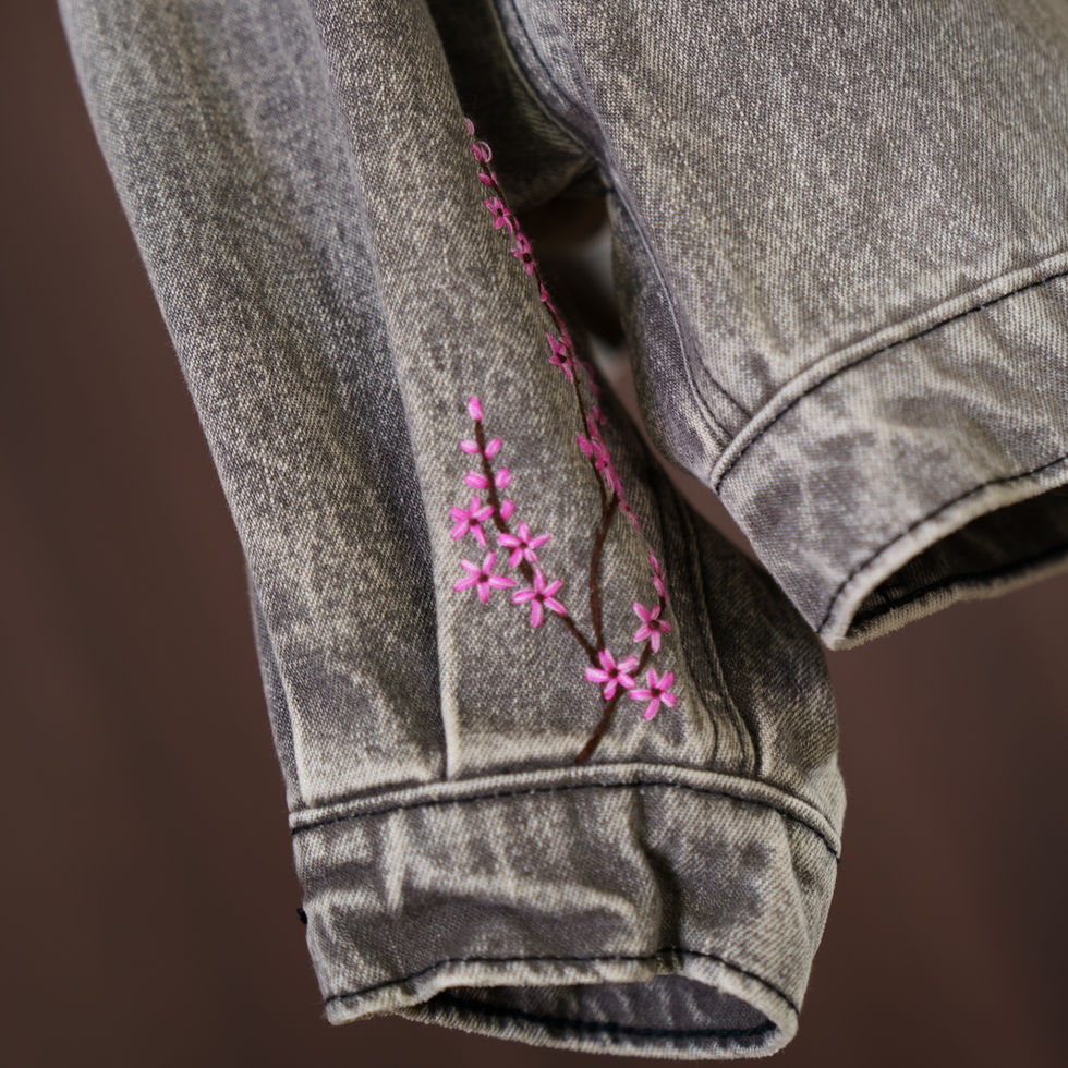 Hold'em H BUTTERFLY Sashiko Sakura 🌸 Turquoise washed denim jacket (Girl)