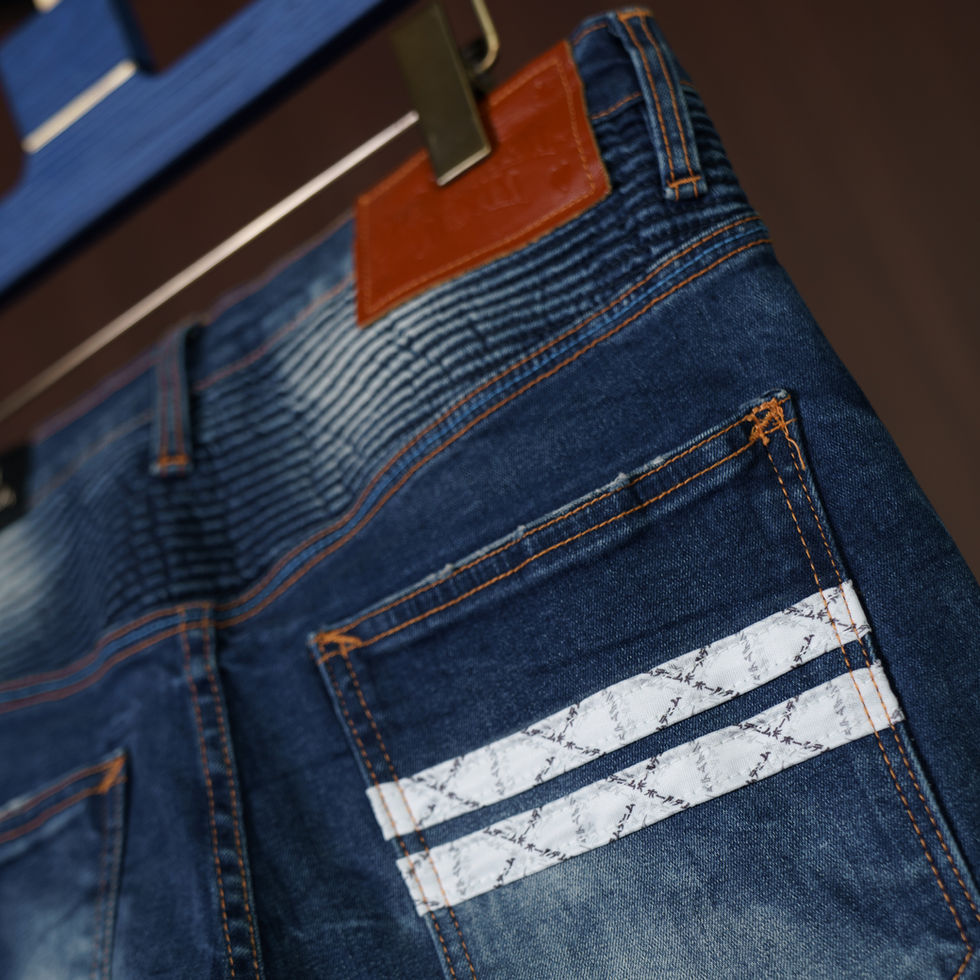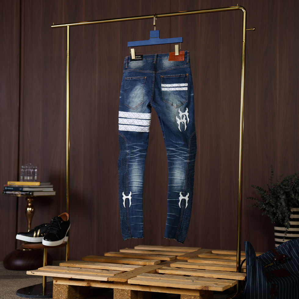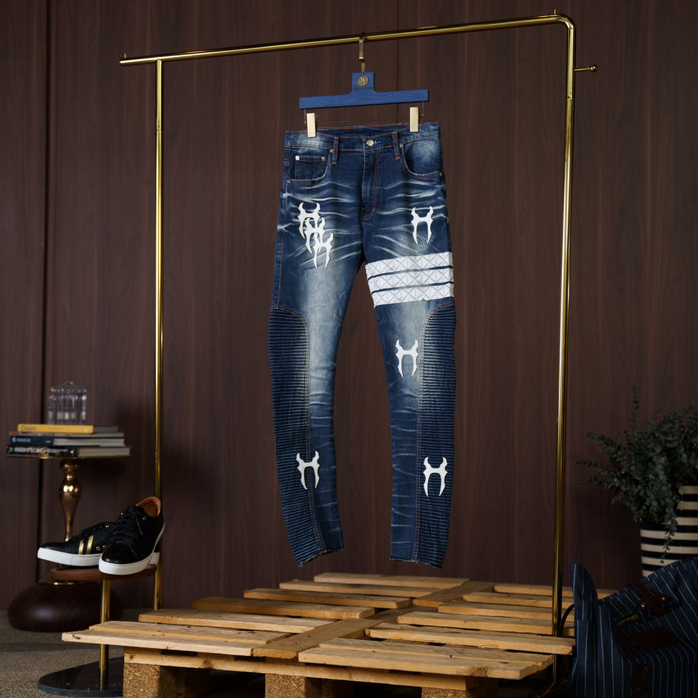 #holdemdenim #holdem Blue Washed Biker Jeans 2024 (White🍥 H8 Monogram Cotton Strap)