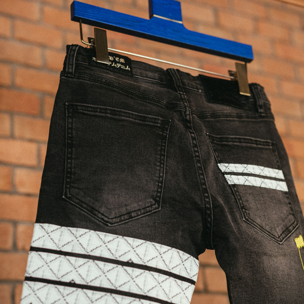 Limited collection 2025 holdem Black♠️♣️ Zig Zag White Wased denim jeans