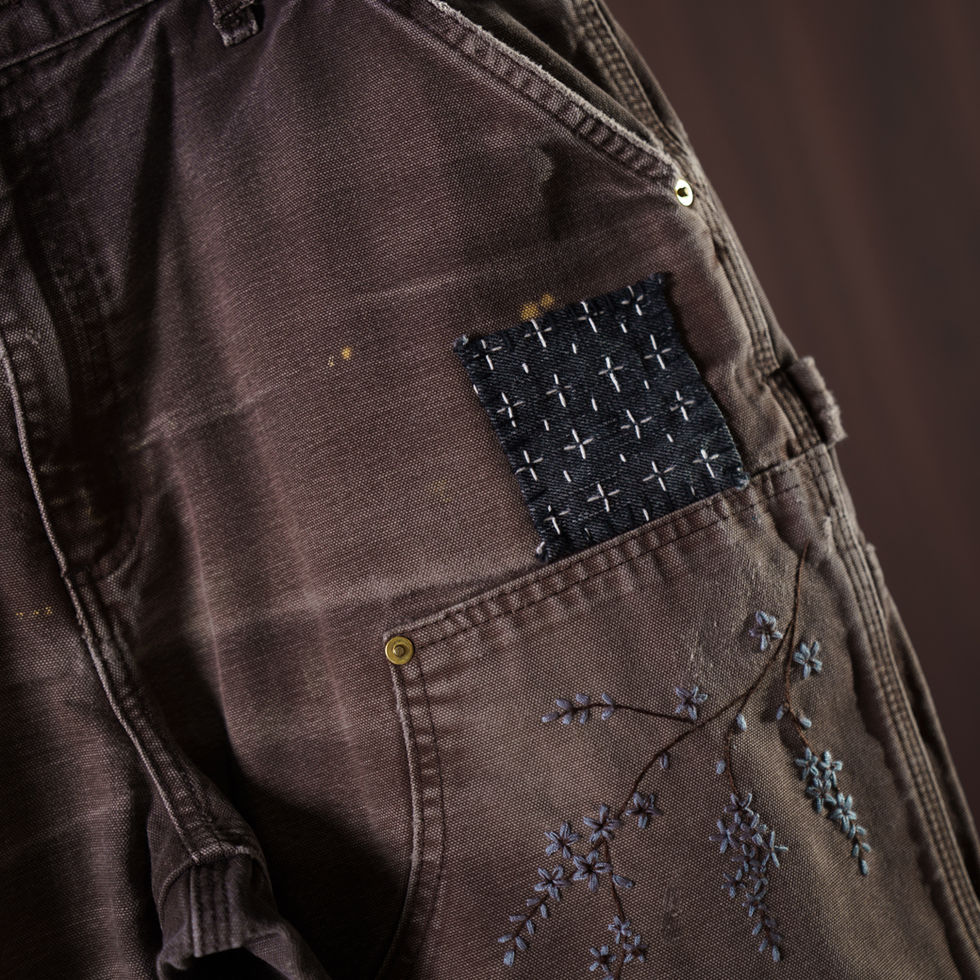 VTG 90s Double Knee Customized H Sashiko Pants ( Brown No.2/33)
