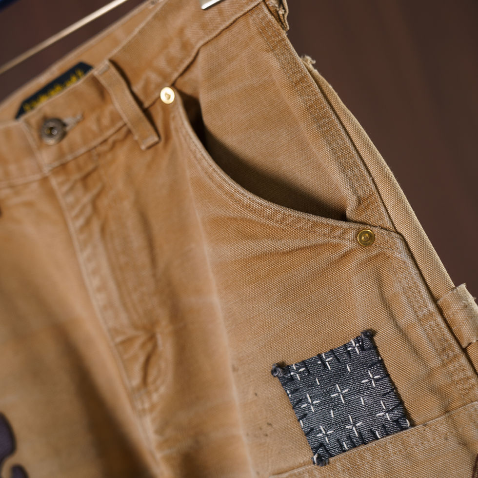 VTG 90s Double Knee Customized H Sashiko Pants ( Khaki No.12/28)