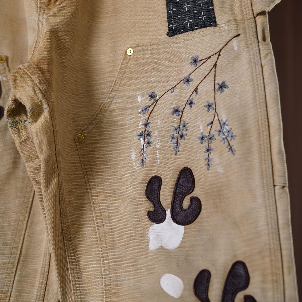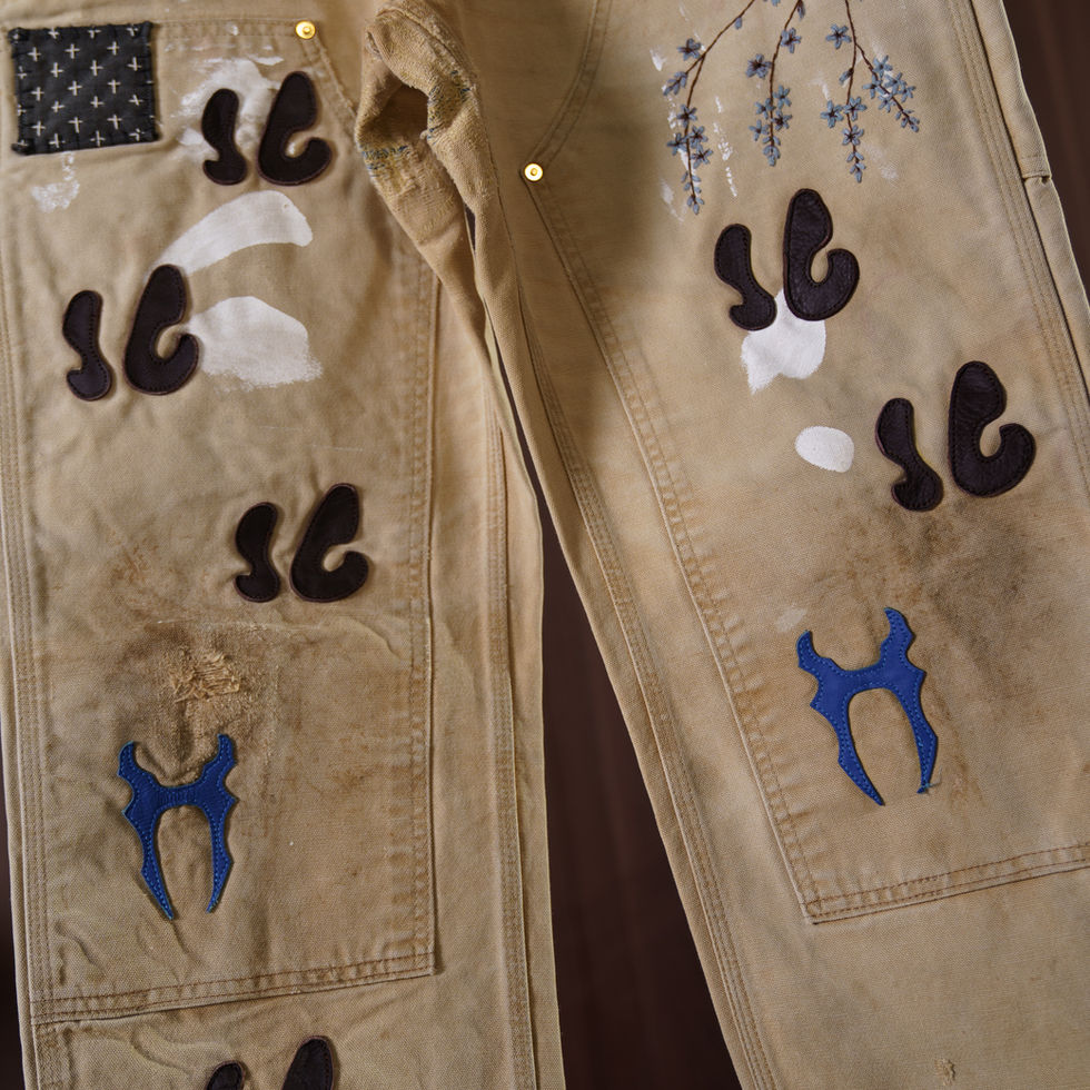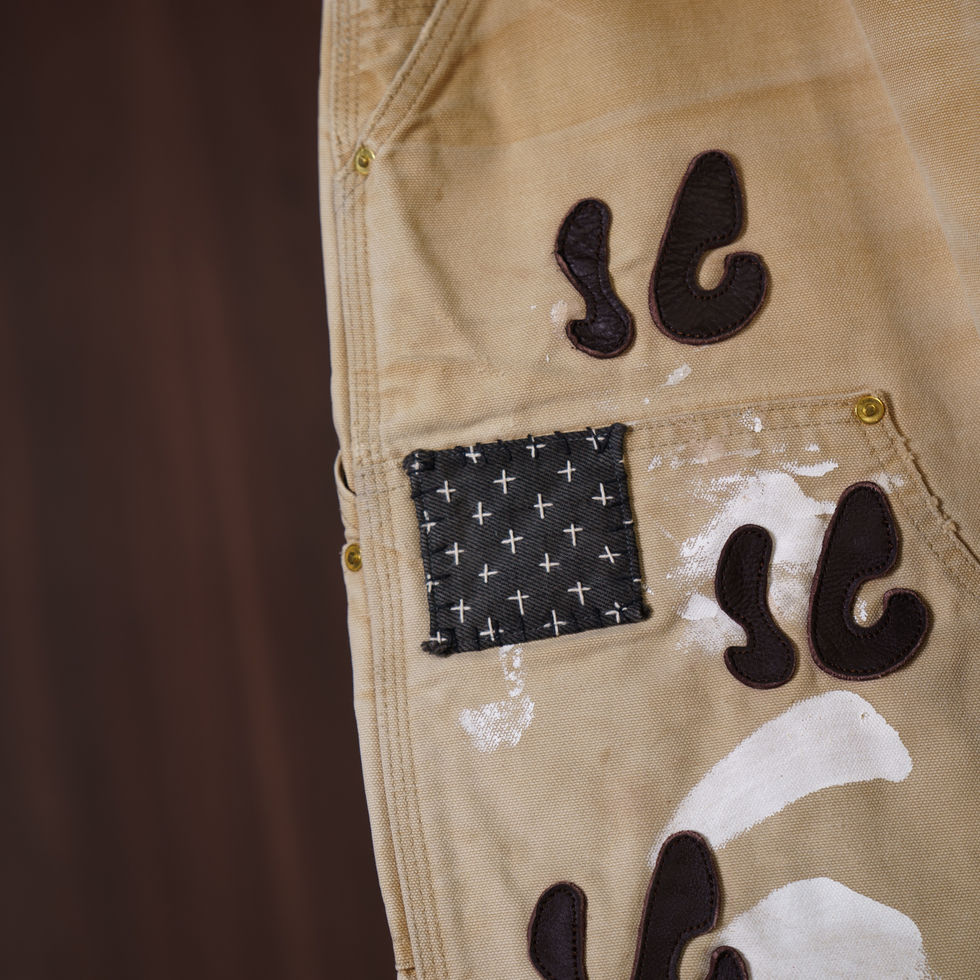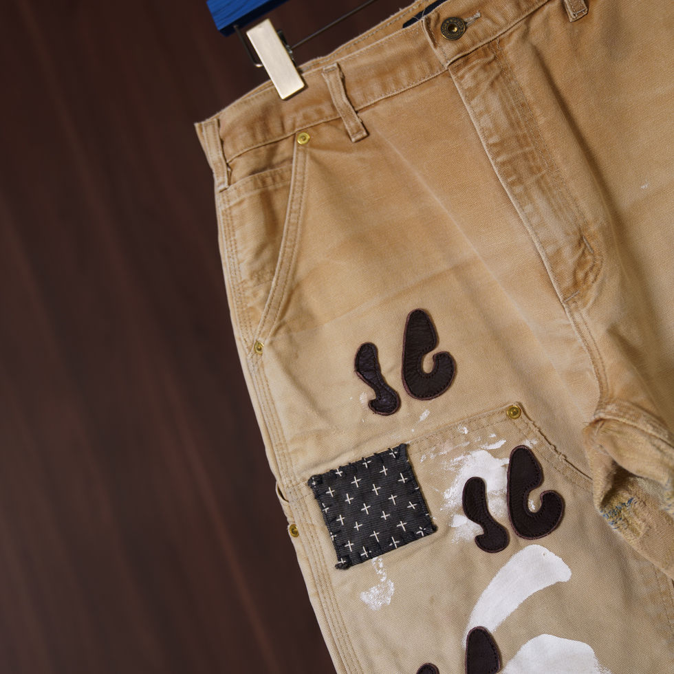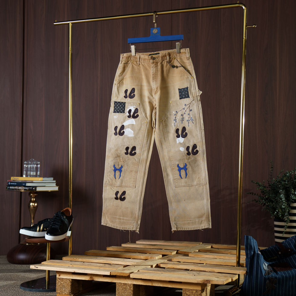 VTG 90s Double Knee Customized H Sashiko Pants ( Khaki No.3/32)
